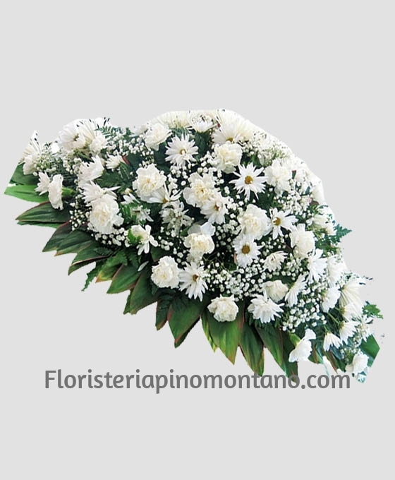 Nuestra Palma Funeraria Pureza, está compuesta por Clavel, Margaritas, Margarita Anastasia, Paniculata y Verdes Variados. Está diseñado en flor blanca El color se puede cambiar a gusto del cliente y efectuarlo en la tonalidad que mas guste. Es una palma de difunto que tiene un diseño moderno y original. Este centro de flores para dar condolencias está realizado con flores fúnebres de gran calidad. Somos floristas expertos, por lo que, haremos un trabajo excelente con los centros de flores para el tanatorio, para satisfacer las necesidades de nuestros clientes.