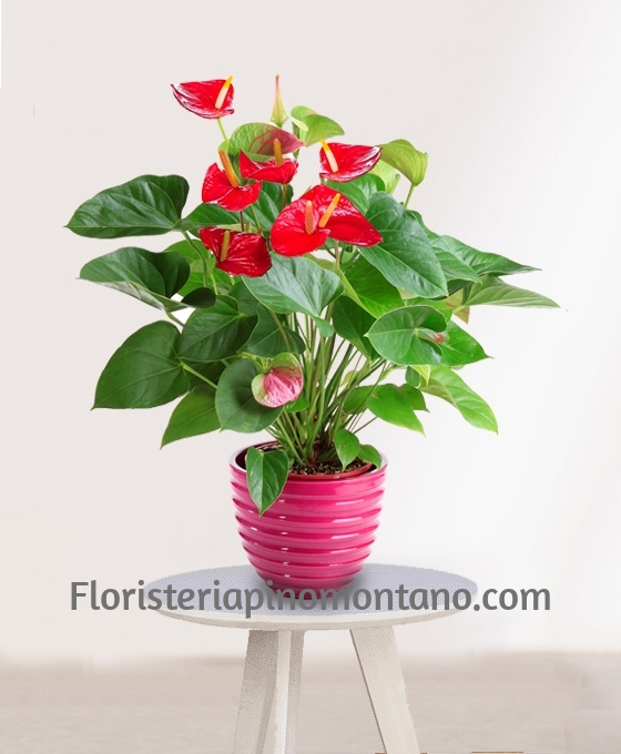 La Planta Anthurium, es la planta del amor espiritual, por su forma de corazón o del amor ardiente por su erótica anatomía. Esbelta y tropical, es perfecta como planta de interior o como flor cortada en ramos ‘minimal’. El Anthurium andreanum es una de las plantas de interior más elegantes por su follaje y numerosas flores que duran mucho tiempo. Regalar una planta de Anthurium seria un gran detalle, ya que lucirá por sus grandes flores rojas, contrastadas con sus abundantes y grandes hojas verdes. Los anthurios necesitan los cuidados de toda planta tropical: humedad ambiental, calor suave y mucha luminosidad sin sol directo.