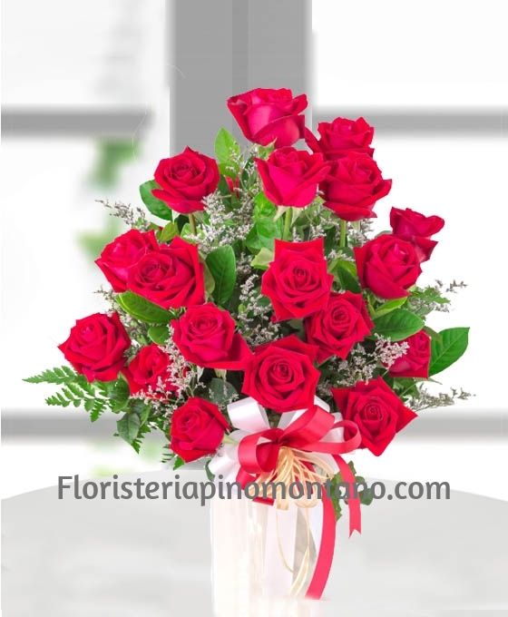 Fino y elegante es este Ramo de 18 Rosas. Esta confeccionado con 18 rosas decorado con paniculata blanca y bonitos verdes que contrastan con el siempre elegante rojo de las rosas. ¿Quieres hacer el regalo perfecto? Pues este es el momento. Sin duda, es el mejor regalo para esa persona a la que queremos ofrecerle un día inmejorable, e ideal para regalar en cualquier momento, si lo que queremos es enviar rosas rojas a domicilio. Bien sea un ramo de rosas rojas para el Día de la Madre o unas rosas rojas para San Valentín, este ramo de regalo de nuestra floristería online es la mejor opción.